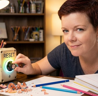 But your art supplies? They look like artifacts from a past life. Your colored pencils are sitting in their tins like judgmental little wooden sticks, and the blank paper feels less like a "fresh start" and more like a vast, snowy tundra you aren’t dressed for.