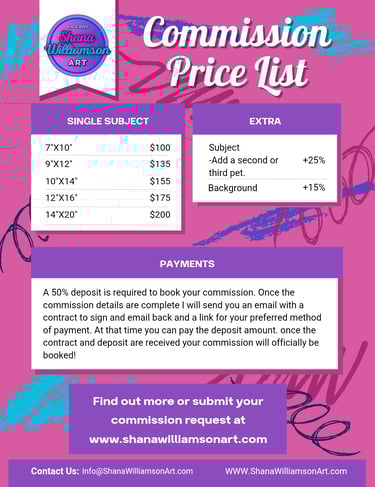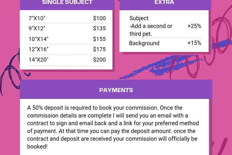 If you have multiple pets and want each to have an individual portrait just reach out as I will offer a discount on additional portraits.